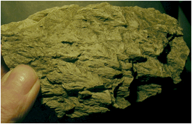 Fig. 26. Astillamiento cónico desarrollado en una arenisca procedente de la estructura de impacto de Beaverhead (Montana, USA).